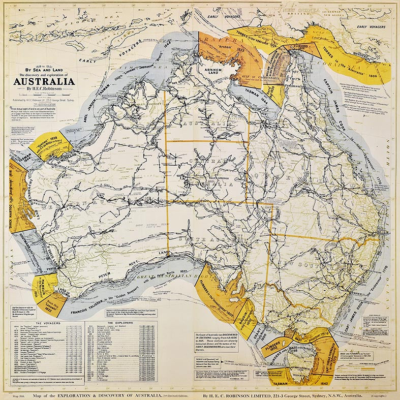 Canvas or Paper Print of Australian Explorers Map