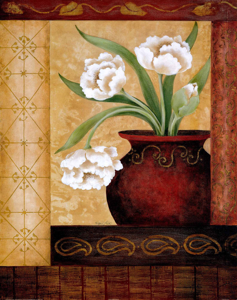 Canvas or Paper Print of Brown pot & White flower 01