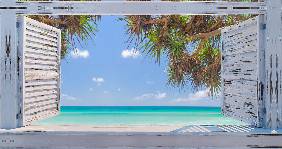 Canvas or Paper Print of Shutters to Beach with Pandanus