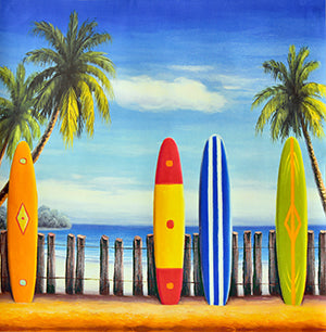 Canvas or Paper Print of Surfboards on Beach painting No.1